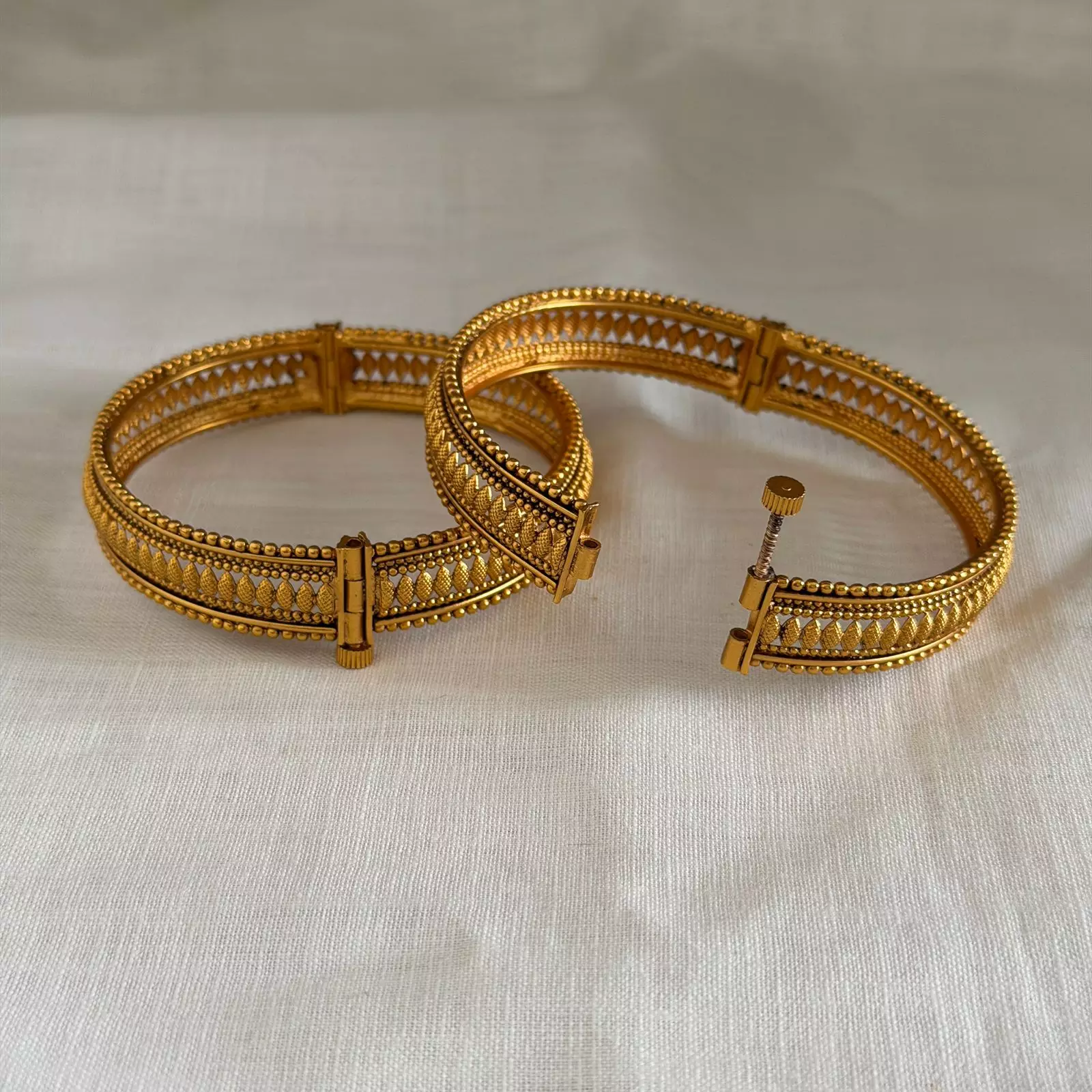 Furthermore, our Bangle are finished with an impeccable antique Antique Bangle  polish, further enhancing their vintage charm and giving them an alluring, aged appearance. Additionally, the meticulous attention to detail in the polishing process ensures a smooth, flawless surface that reflects light beautifully, ultimately adding to the overall elegance of the piece.