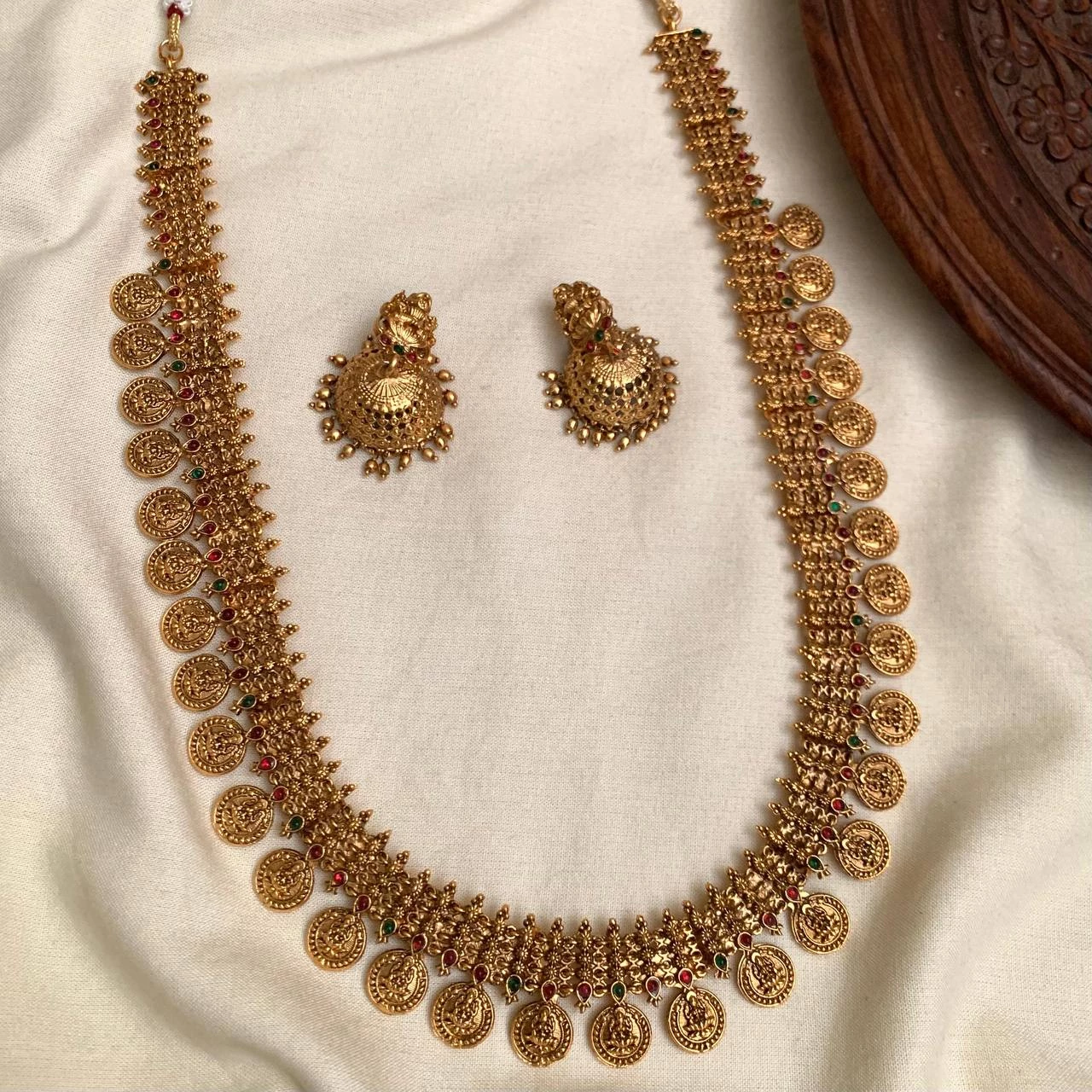 Adorned with a breathtaking selection of Zircon AD, our Antique Necklaces exude luxury and opulence. Each stone is carefully chosen for its exceptional quality and brilliance, effortlessly adding a touch of sparkle and glamour to every necklace. Notably, whether it’s the fiery red of the rubies, the lush green of the emeralds, or the dazzling clarity of the zircon AD stones, each gemstone complements the antique gold finish perfectly, creating a captivating contrast that effortlessly catches the eye.
