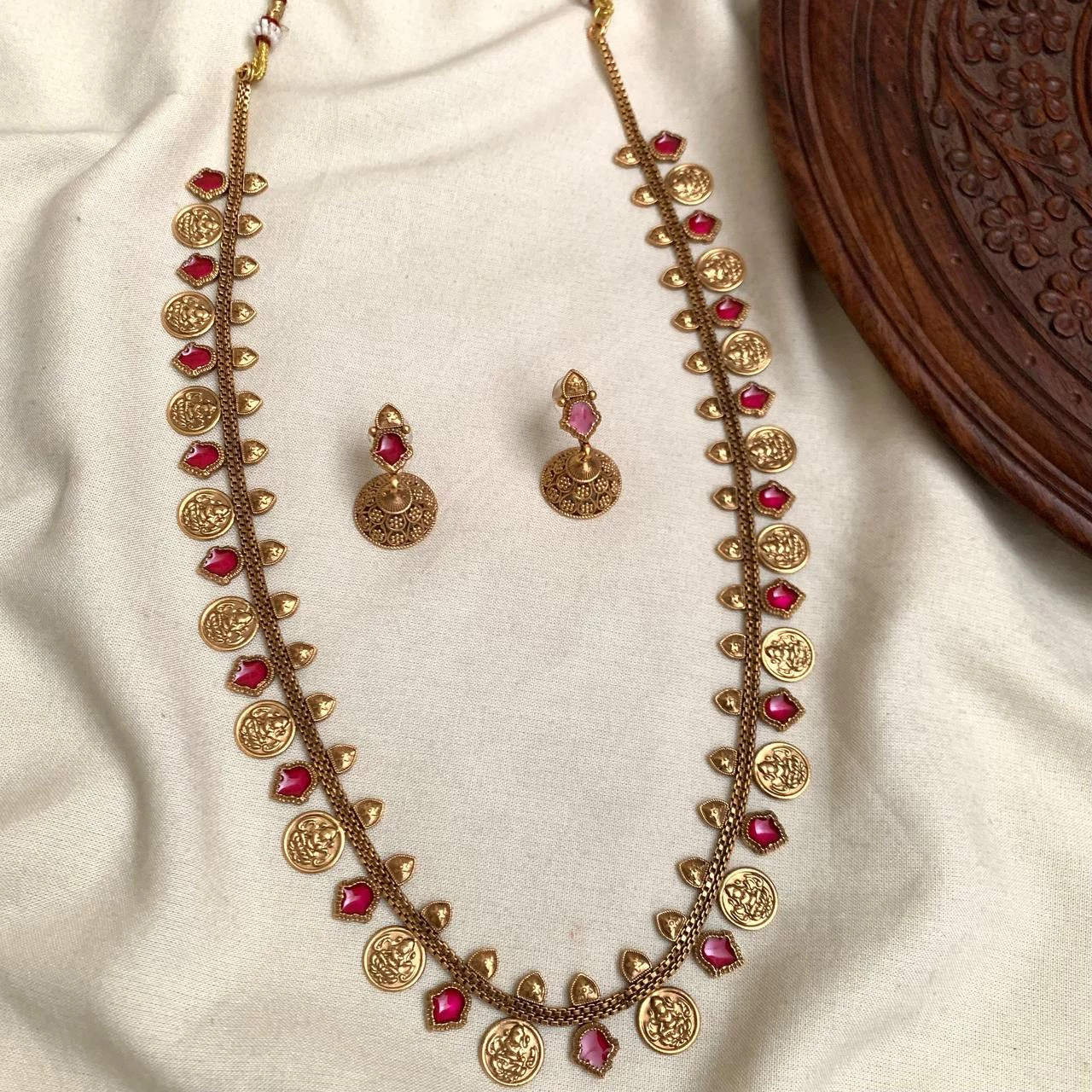 Adorned with a breathtaking selection of Zircon AD, our Antique Necklaces exude luxury and opulence. Each stone is carefully chosen for its exceptional quality and brilliance, effortlessly adding a touch of sparkle and glamour to every necklace. Notably, whether it’s the fiery red of the rubies, the lush green of the emeralds, or the dazzling clarity of the zircon AD stones, each gemstone complements the antique gold finish perfectly, creating a captivating contrast that effortlessly catches the eye.
