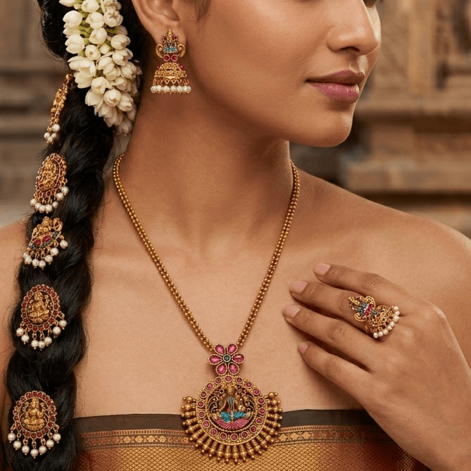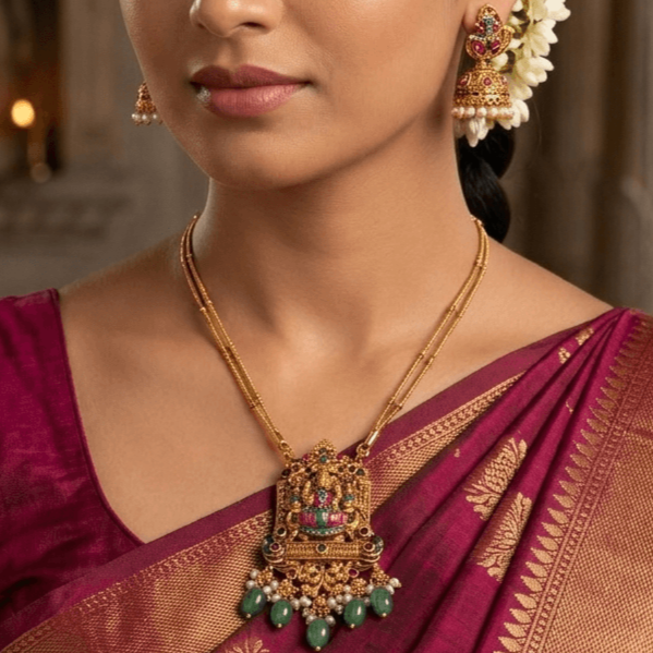 Whether you’re dressing up for a special occasion or adding a touch of elegance to your everyday look, our Antique Necklaces are the perfect accessory. Their versatile design allows them to effortlessly transition from day to night, making them an indispensable addition to any jewelry collection. Whether you choose to pair them with a traditional saree for a classic ethnic look or wear them with a contemporary outfit for a modern twist on vintage glamour, our necklaces will elevate your style with ease.