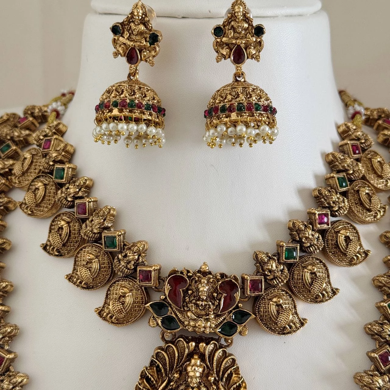 Adorned with a breathtaking selection of Zircon AD, our Antique Necklaces exude luxury and opulence. Each stone is carefully chosen for its exceptional quality and brilliance, effortlessly adding a touch of sparkle and glamour to every necklace. Notably, whether it’s the fiery red of the rubies, the lush green of the emeralds, or the dazzling clarity of the zircon AD stones, each gemstone complements the antique gold finish perfectly, creating a captivating contrast that effortlessly catches the eye.