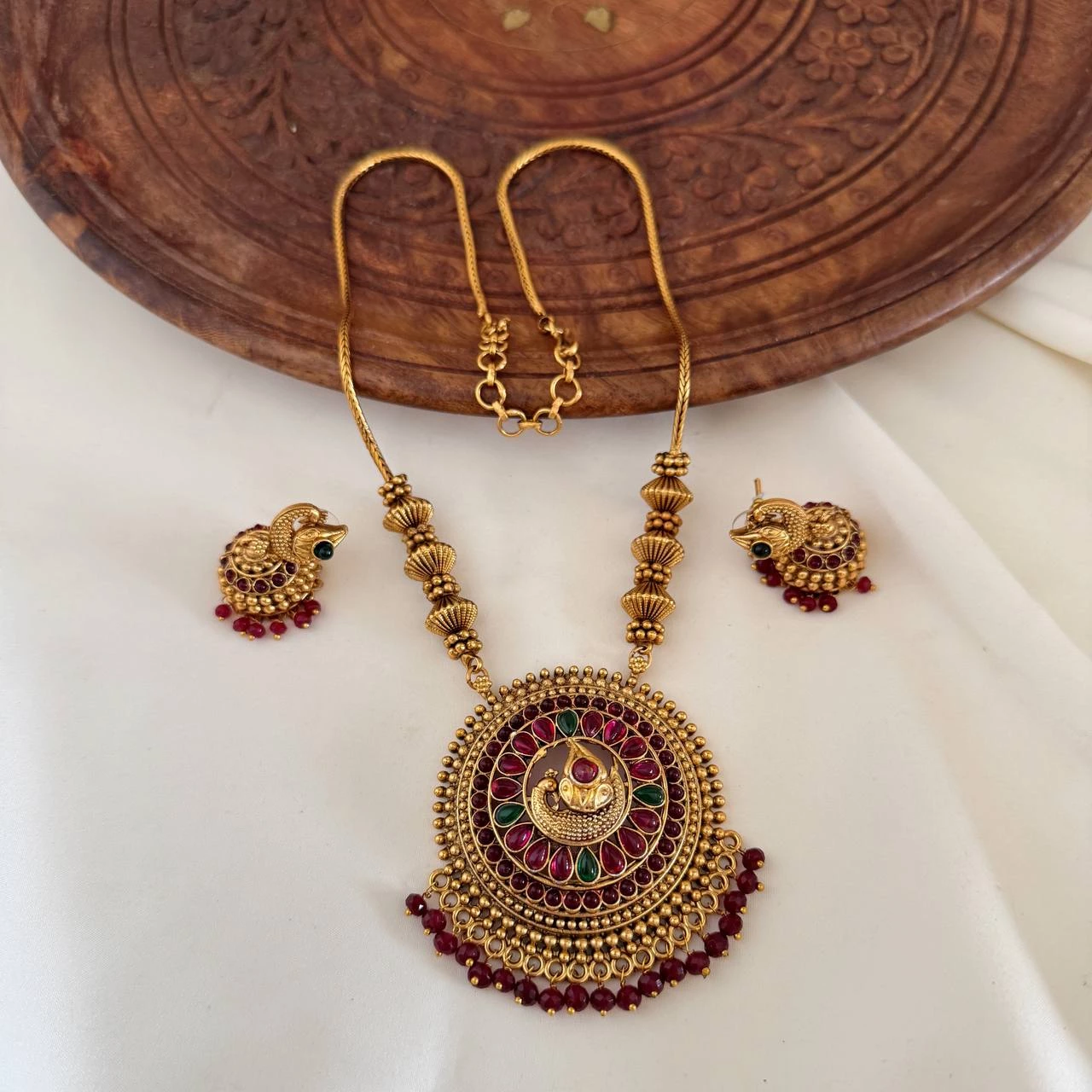 Adorned with a breathtaking selection of Zircon AD, our Antique Necklaces exude luxury and opulence. Each stone is carefully chosen for its exceptional quality and brilliance, effortlessly adding a touch of sparkle and glamour to every necklace. Notably, whether it’s the fiery red of the rubies, the lush green of the emeralds, or the dazzling clarity of the zircon AD stones, each gemstone complements the antique gold finish perfectly, creating a captivating contrast that effortlessly catches the eye.